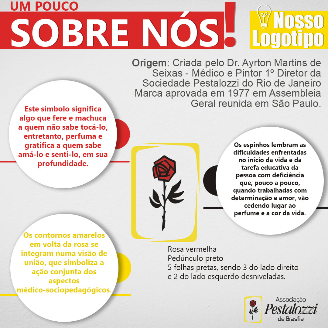 O logotipo da Associação Pestalozzi foi criado pelo Dr. Ayrton Martins de Seixas - Médico e Pintor 1º Diretor da Sociedade Pestalozzi do Rio de Janeiro, a marca foi aprovada no ano de 1977 em Assembleia Geral reunida em São Paulo.