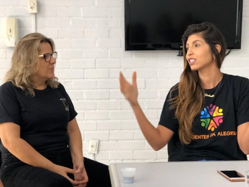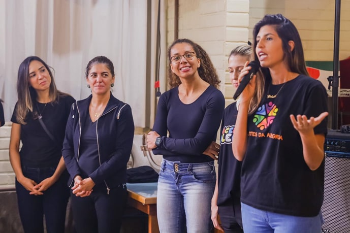 Foi nessa rede de contatos que as Agentes da Alegria chegaram à Associação Pestalozzi de Brasília. “Um adulto com deficiência não é visto, é como se não existisse”, disse Gabriela na reunião com a direção da Associação Pestalozzi de Brasília. “É para esses que nosso grupo também trabalha. Por isso estamos muito felizes em estar aqui com vocês. Cada integrante ajuda como pode, cada um dá o que pode”, afirmou.